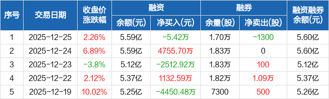 四创电子:融资净偿还5.42万元,融资余额5.59亿元(12-25)