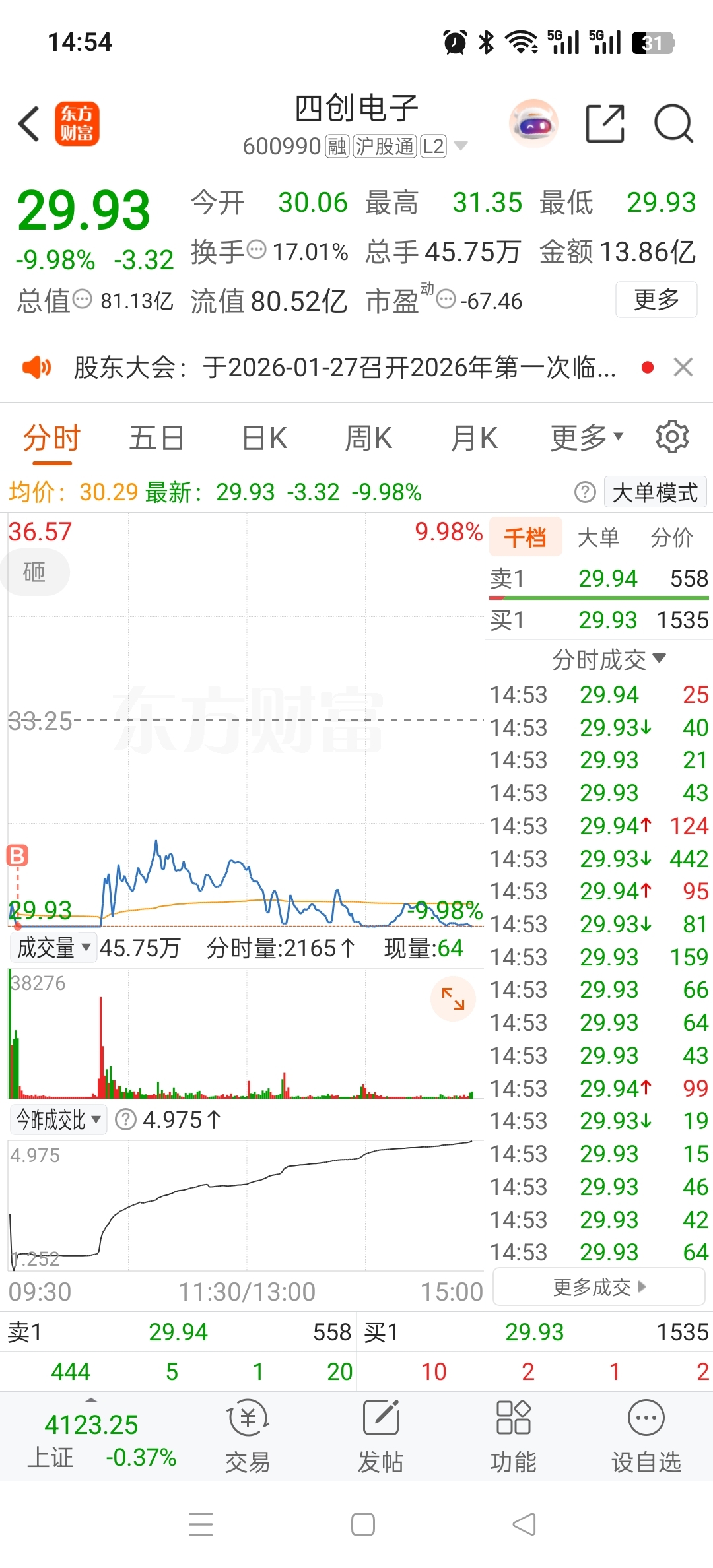 $四创电子(SH600990)$ 买1000股试试水
