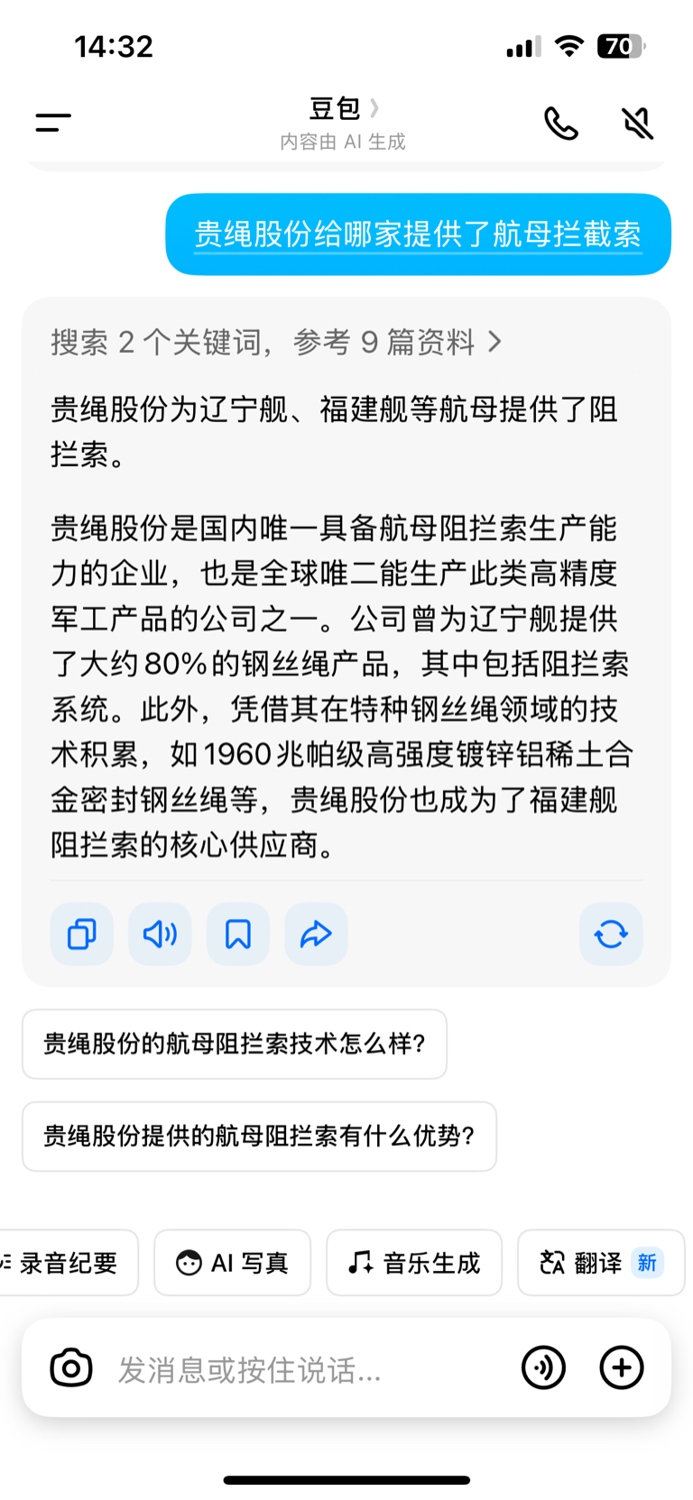 $贵绳股份(SH600992)$ 什么巨力,巨力能生产航母拦截索么