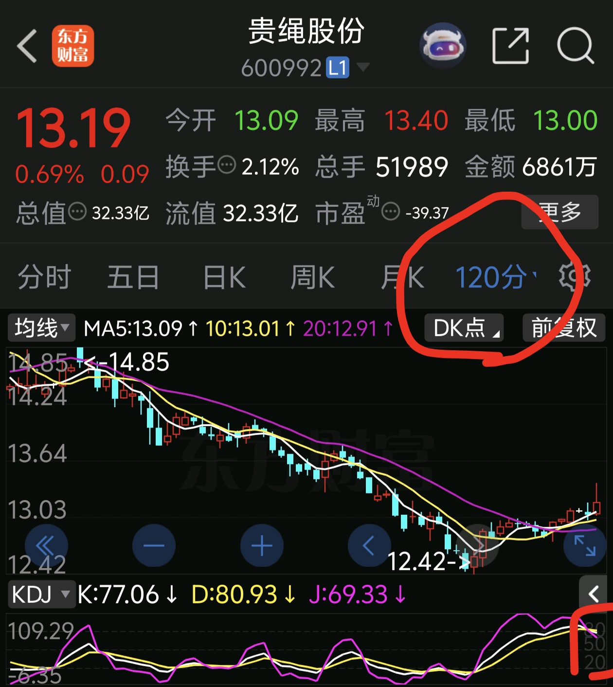 周一跟今天差不多,120kdj也有可能拉出一个诱多,但是还是要往下走!做好高抛低