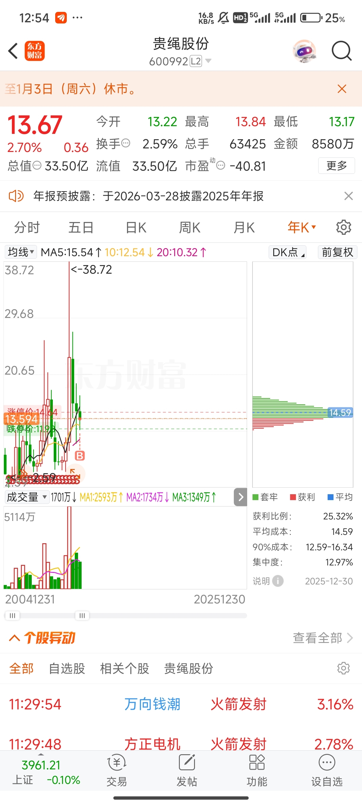 $贵绳股份(SH600992)$ 还有两天把牛K收红吧