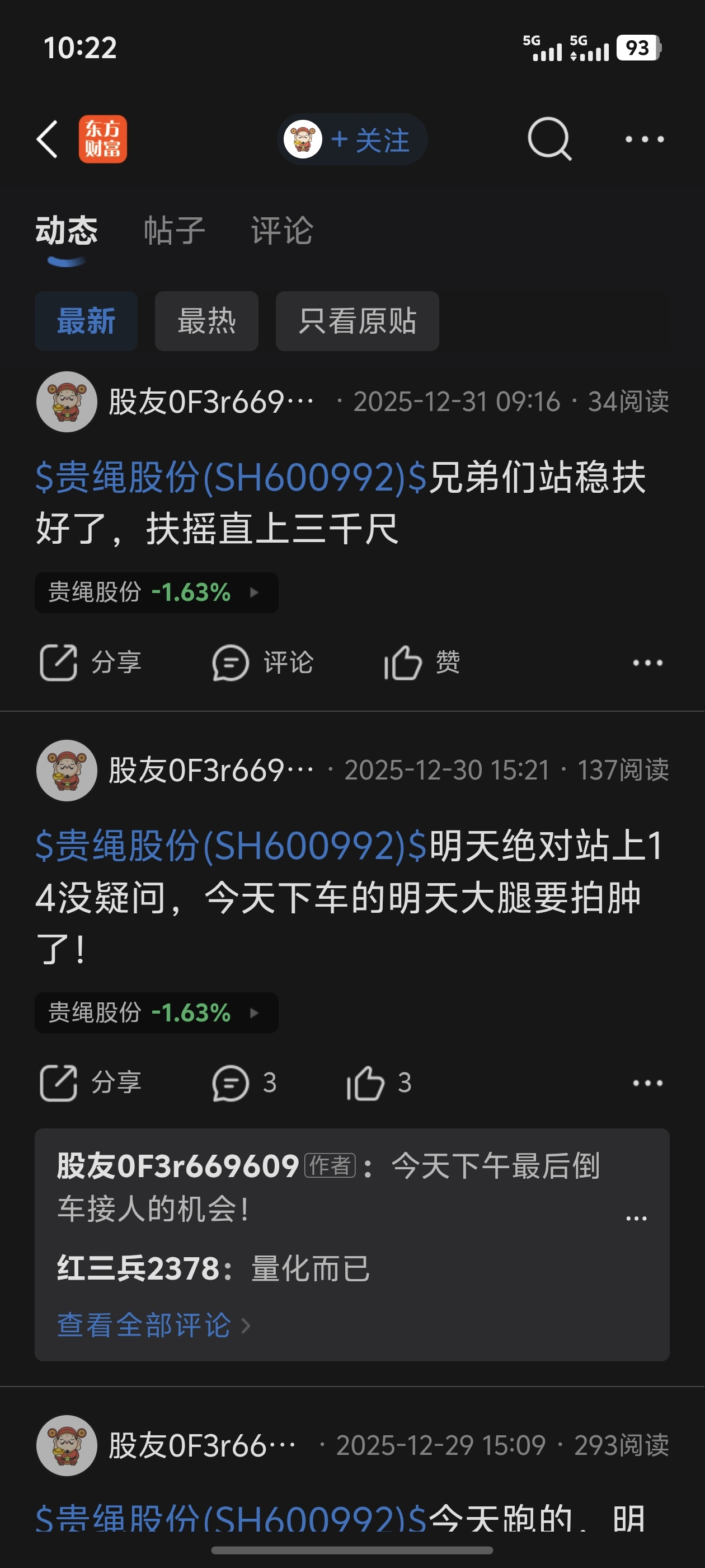 温馨提示: 1.根据《证券法》规定,禁止编造、传播虚假信息或者误导性信息,扰乱证券市场;2.用户在本社区发表的所有资料、言论等仅代表个人观点,与本网站立场无关,不对您构成任何投资建议。用户应基于自己的独立判断,自行决定证券投资并承担相应风险。《东方财富社区管理规定》