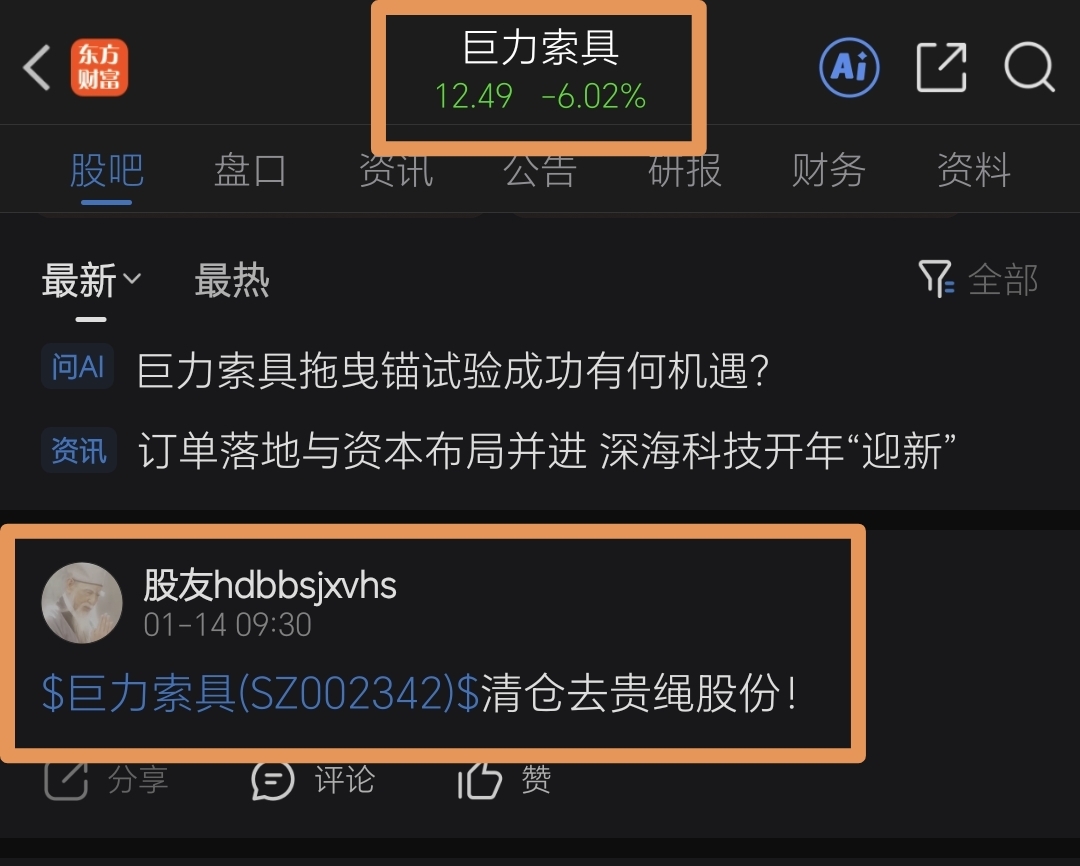 温馨提示: 1.根据《证券法》规定,禁止编造、传播虚假信息或者误导性信息,扰乱证券市场;2.用户在本社区发表的所有资料、言论等仅代表个人观点,与本网站立场无关,不对您构成任何投资建议。用户应基于自己的独立判断,自行决定证券投资并承担相应风险。《东方财富社区管理规定》