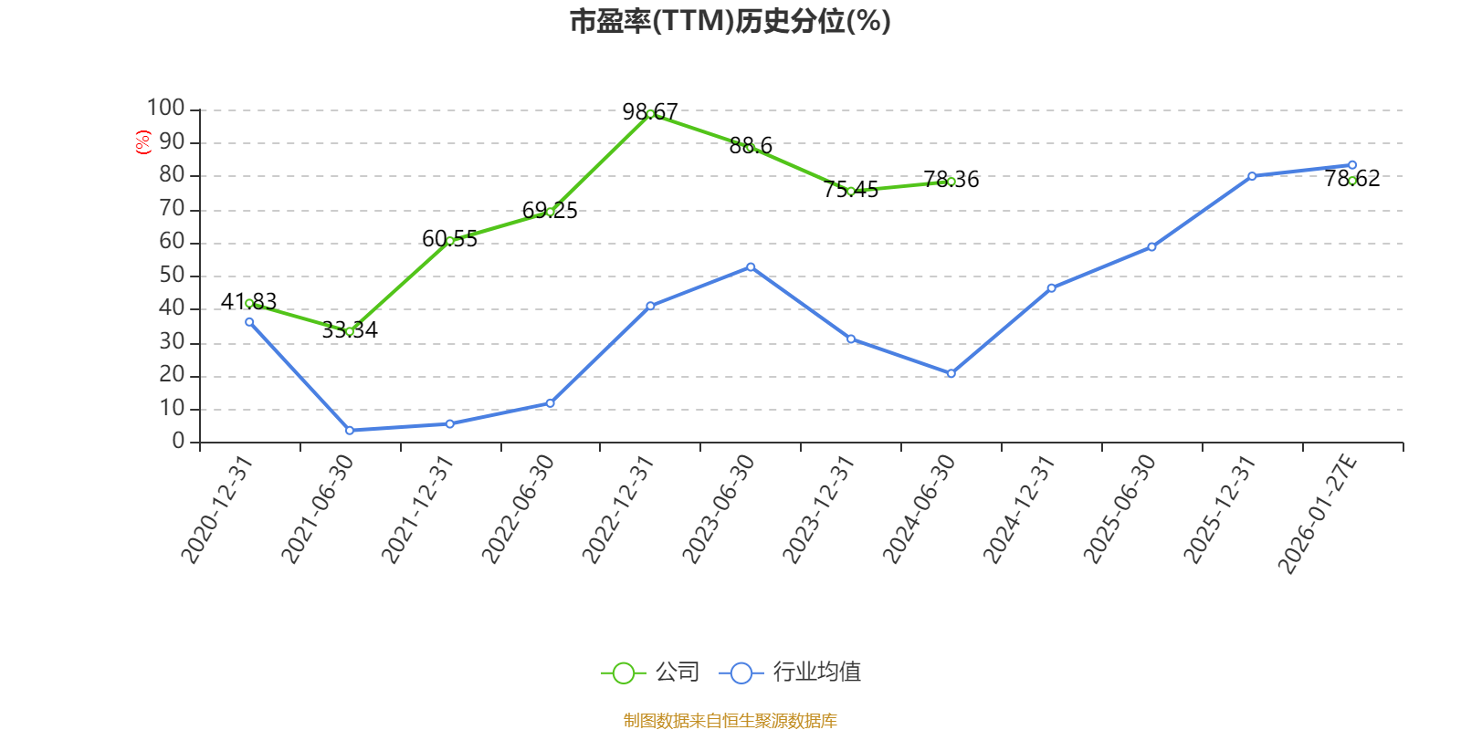 以本次披露业绩预告均值计算,公司近年市盈率(TTM)图如下所示: