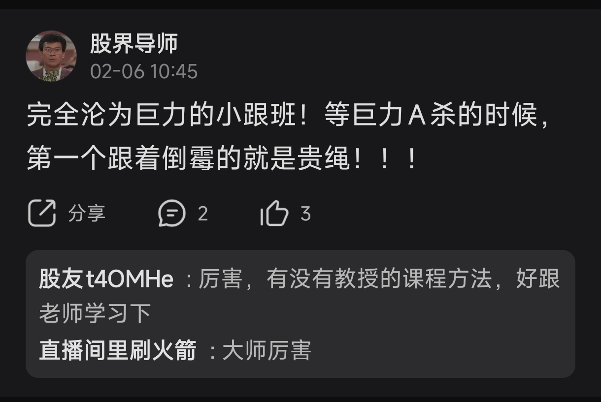 温馨提示: 1.根据《证券法》规定,禁止编造、传播虚假信息或者误导性信息,扰乱证券市场;2.用户在本社区发表的所有资料、言论等仅代表个人观点,与本网站立场无关,不对您构成任何投资建议。用户应基于自己的独立判断,自行决定证券投资并承担相应风险。《东方财富社区管理规定》