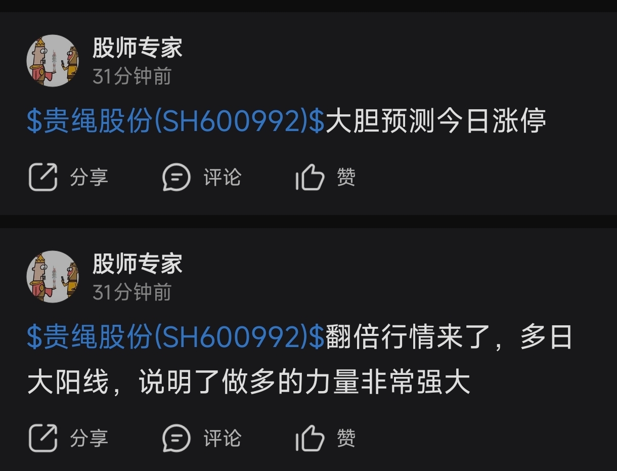 温馨提示: 1.根据《证券法》规定,禁止编造、传播虚假信息或者误导性信息,扰乱证券市场;2.用户在本社区发表的所有资料、言论等仅代表个人观点,与本网站立场无关,不对您构成任何投资建议。用户应基于自己的独立判断,自行决定证券投资并承担相应风险。《东方财富社区管理规定》