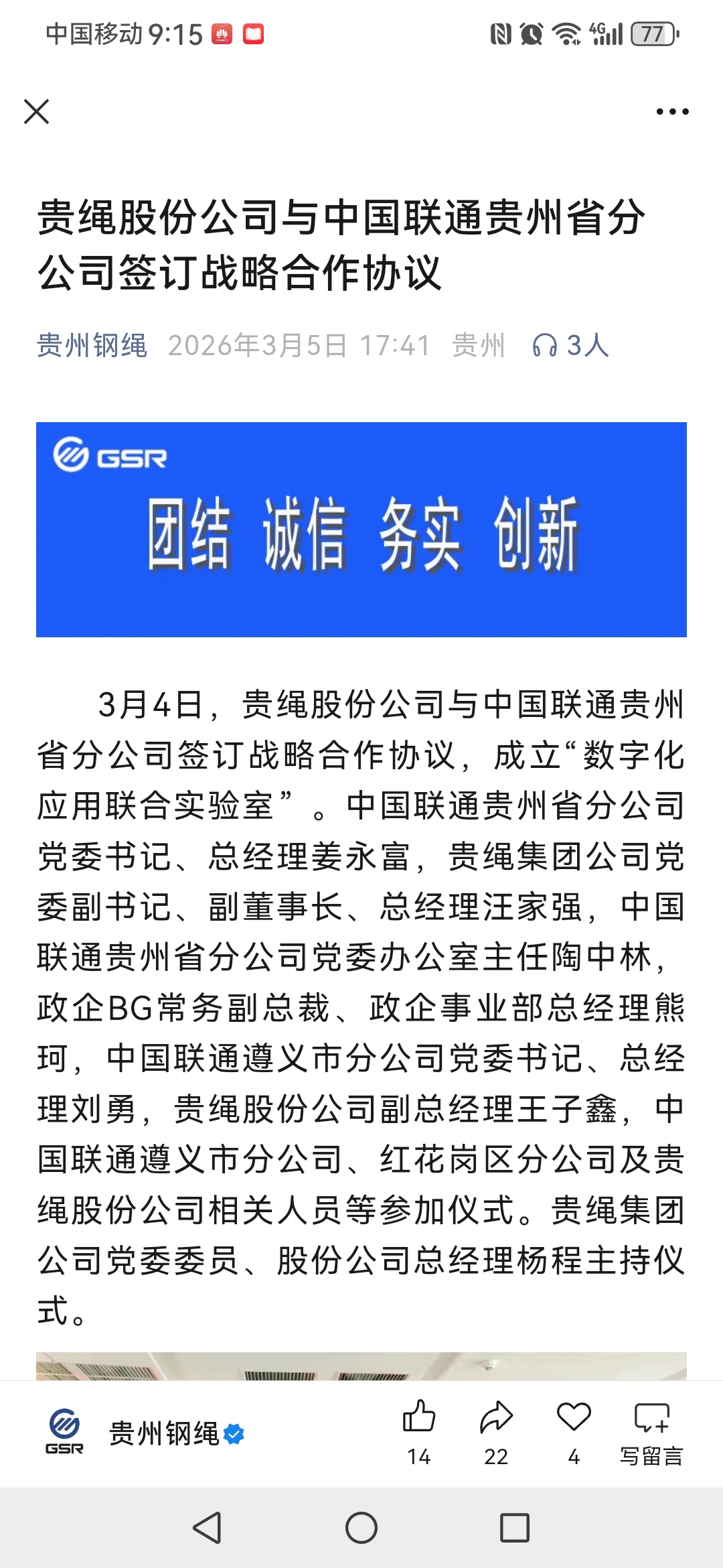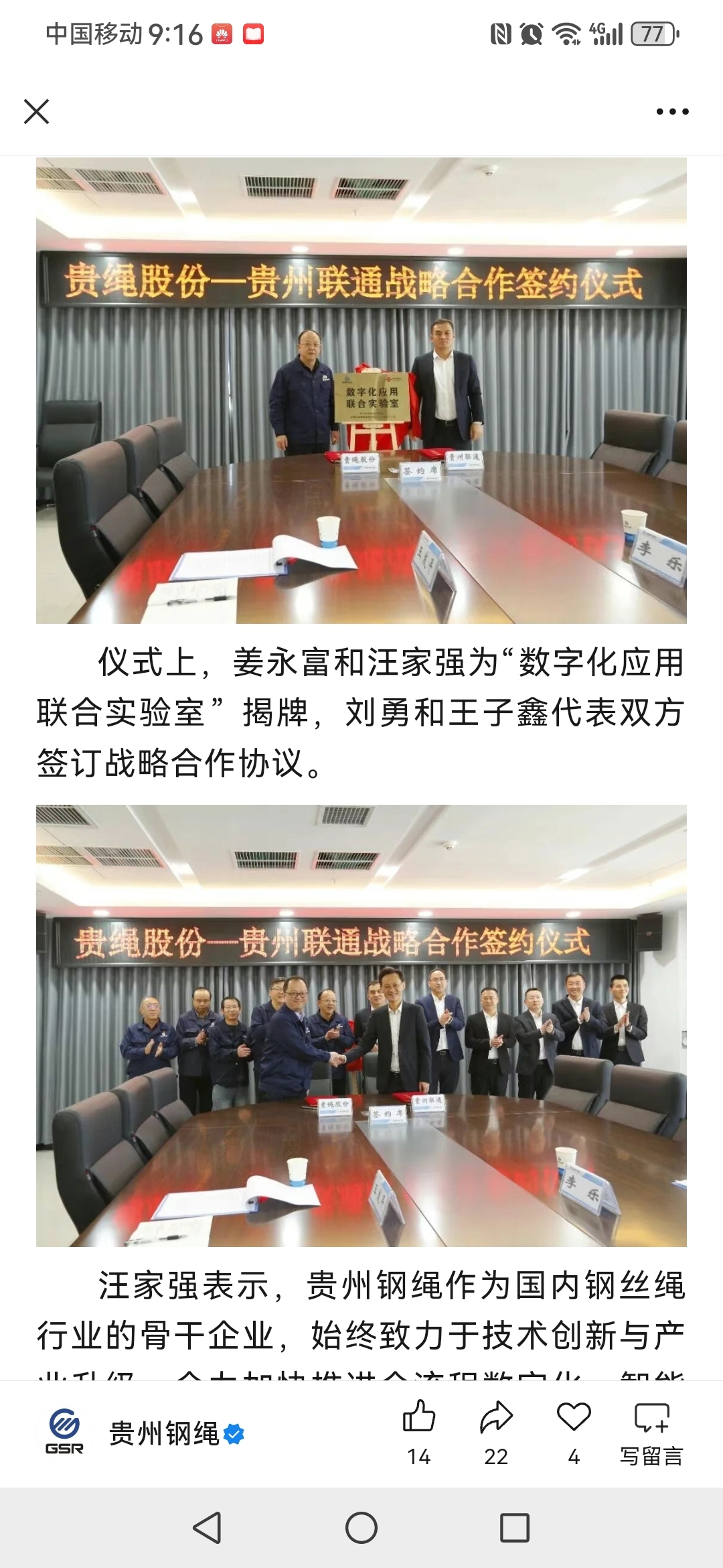 贵绳股份公司与中国联通贵州省分公司签订战略合作协议