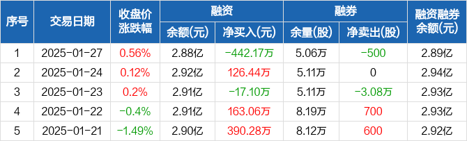 马应龙:融资净偿还442.17万元,融资余额2.88亿元(01-27)