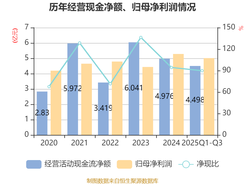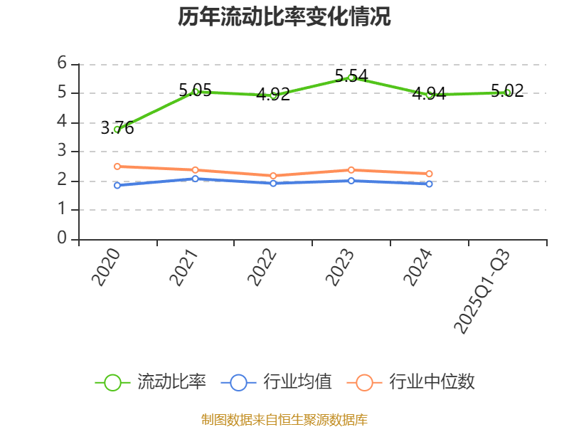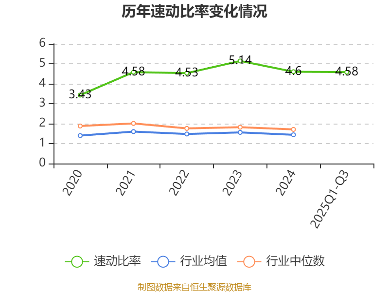 2025年前三季度,公司流动比率为5.02,速动比率为4.58。