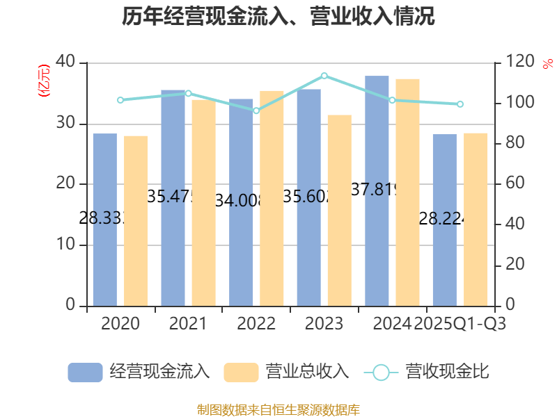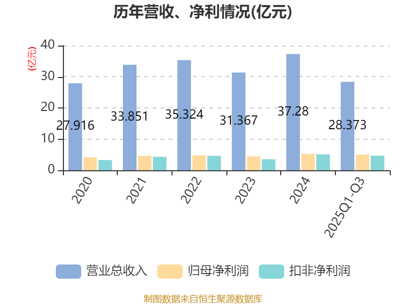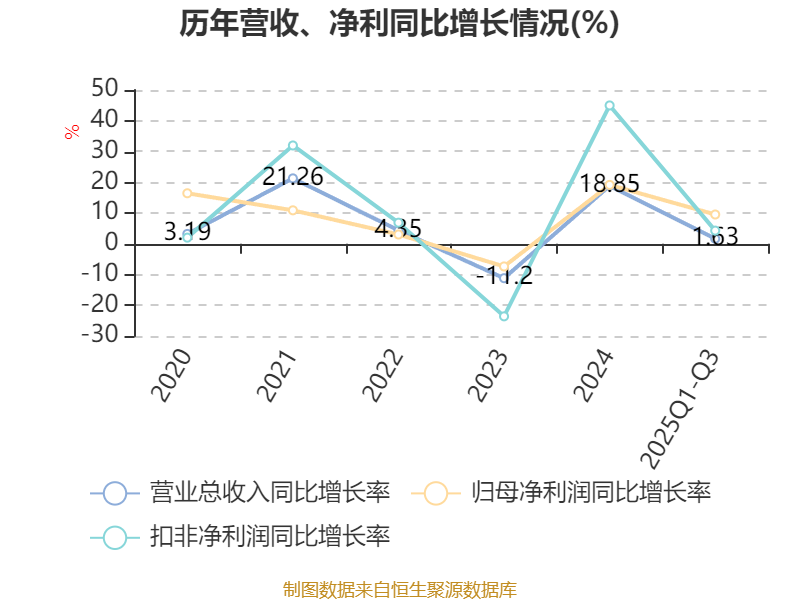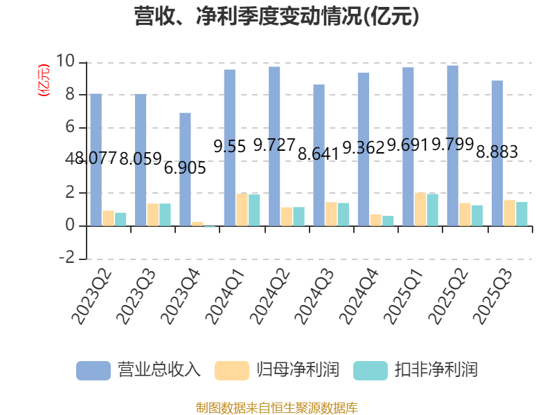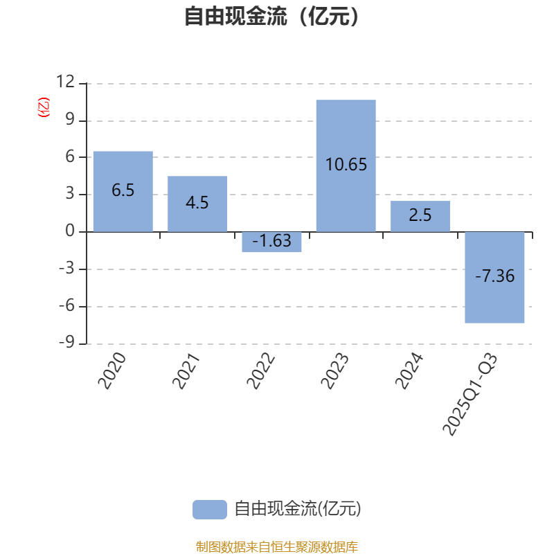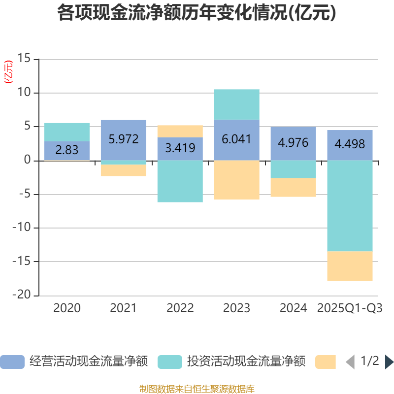 2025年前三季度,公司经营活动现金流净额为4.5亿元,同比增长41.77%;筹资活动现金流净额-4.36亿元,同比减少2.14亿元;投资活动现金流净额-13.47亿元,上年同期为-8.07亿元。