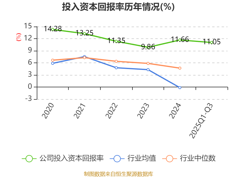盈利能力方面, 2025年前三季度公司加权平均净资产收益率为11.85%,同比上升0.08个百分点。公司2025年前三季度投入资本回报率为11.05%,较上年同期上升0.82个百分点。