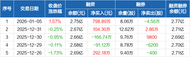马应龙:融资净买入798.89万元,融资余额2.75亿元(01-05)
