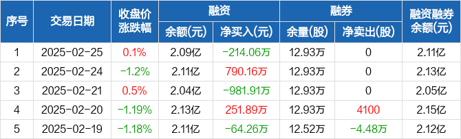 南网储能:融资净偿还214.06万元,融资余额2.09亿元(02-25)