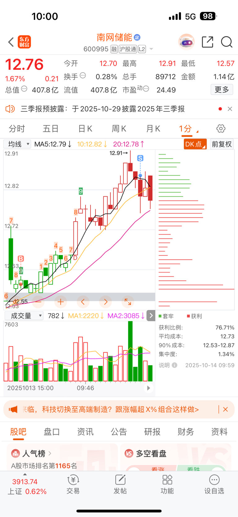 $南网储能(SH600995)$ 涨跌随便跌回去我还是赚