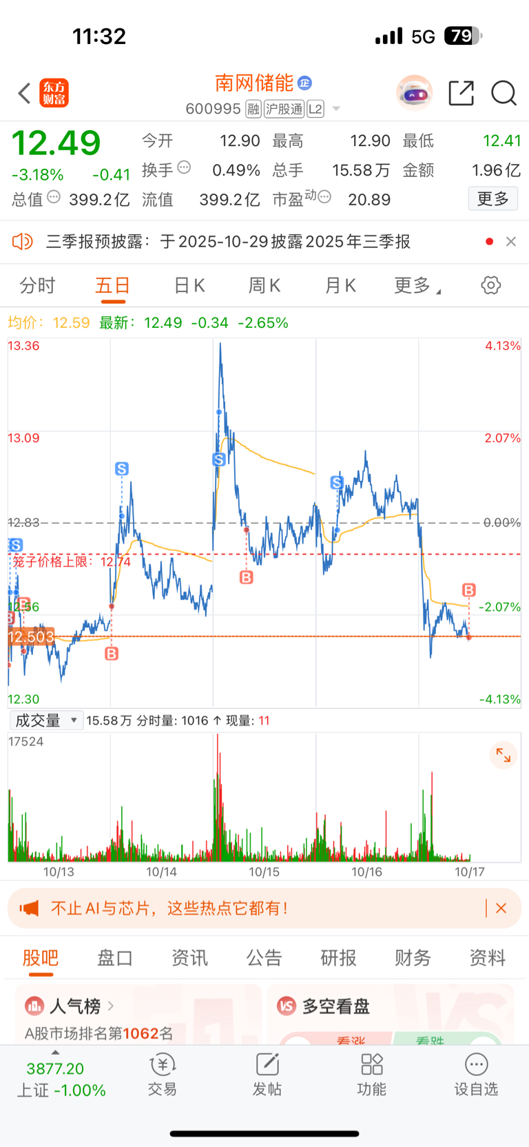 $南网储能(SH600995)$ 昨天T飞了反而逃过一劫今天先买点看看