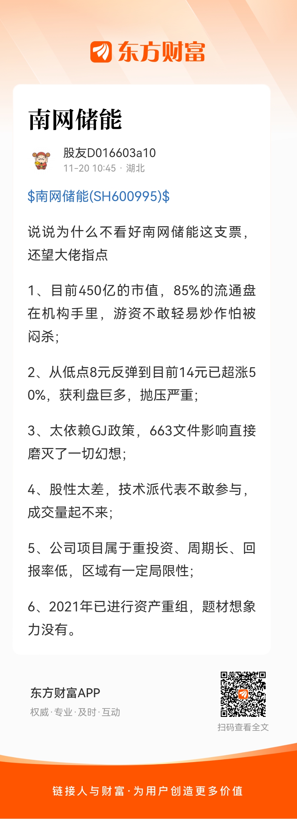 温馨提示: 1.根据《证券法》规定,禁止编造、传播虚假信息或者误导性信息,扰乱证券市场;2.用户在本社区发表的所有资料、言论等仅代表个人观点,与本网站立场无关,不对您构成任何投资建议。用户应基于自己的独立判断,自行决定证券投资并承担相应风险。《东方财富社区管理规定》