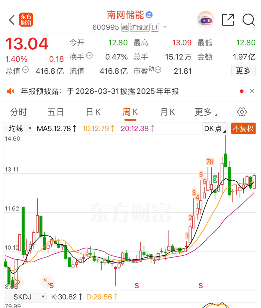 $南网储能(SH600995)$ 周线老鸭头,钱景无量,跑步进入!