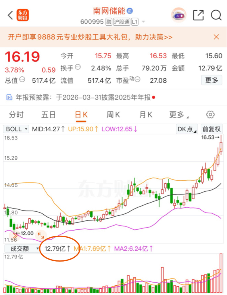$南网储能(SH600995)$ 今天真金白银的成交额是12.79亿元,创六年以来新高,有望突破20元大关!LU起裙子,加油干!