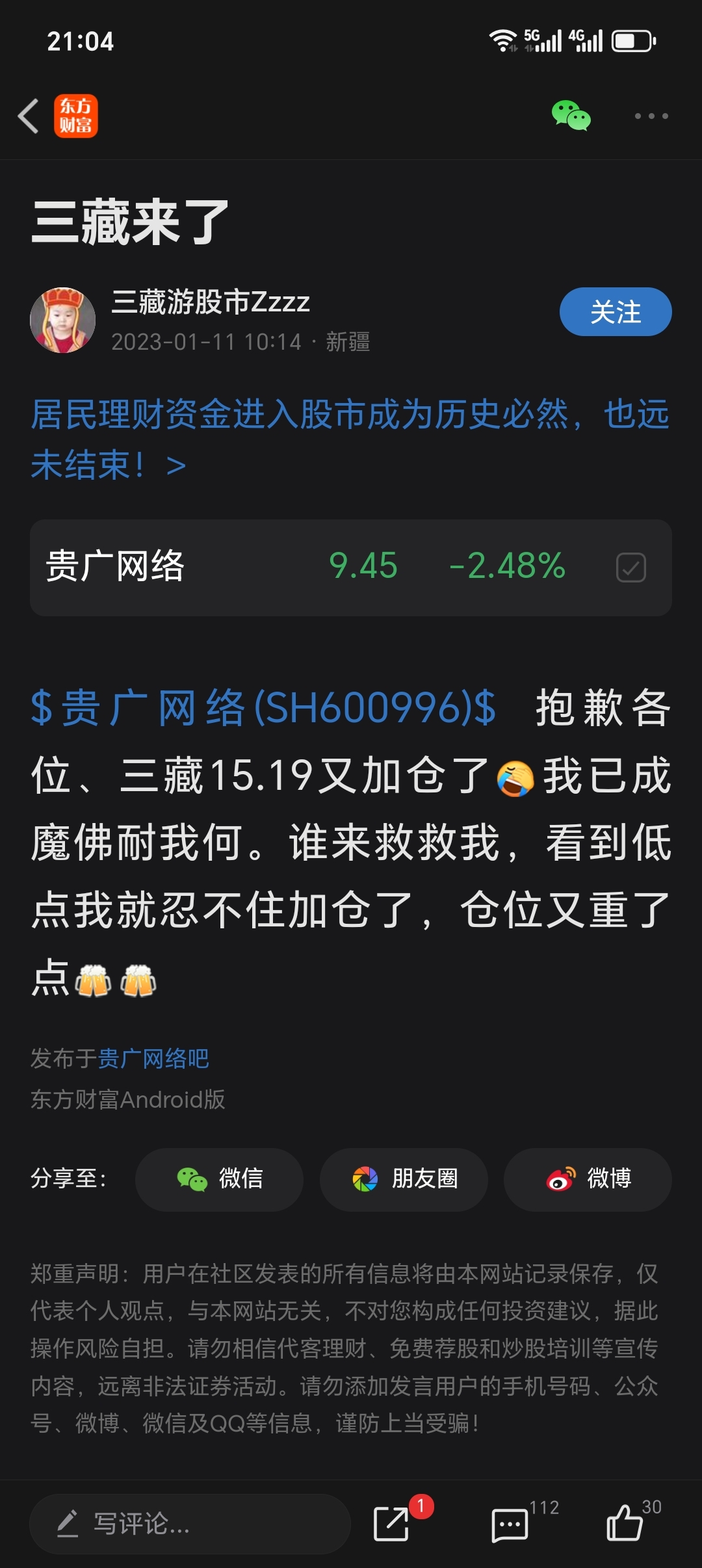 温馨提示: 1.根据《证券法》规定,禁止编造、传播虚假信息或者误导性信息,扰乱证券市场;2.用户在本社区发表的所有资料、言论等仅代表个人观点,与本网站立场无关,不对您构成任何投资建议。用户应基于自己的独立判断,自行决定证券投资并承担相应风险。《东方财富社区管理规定》