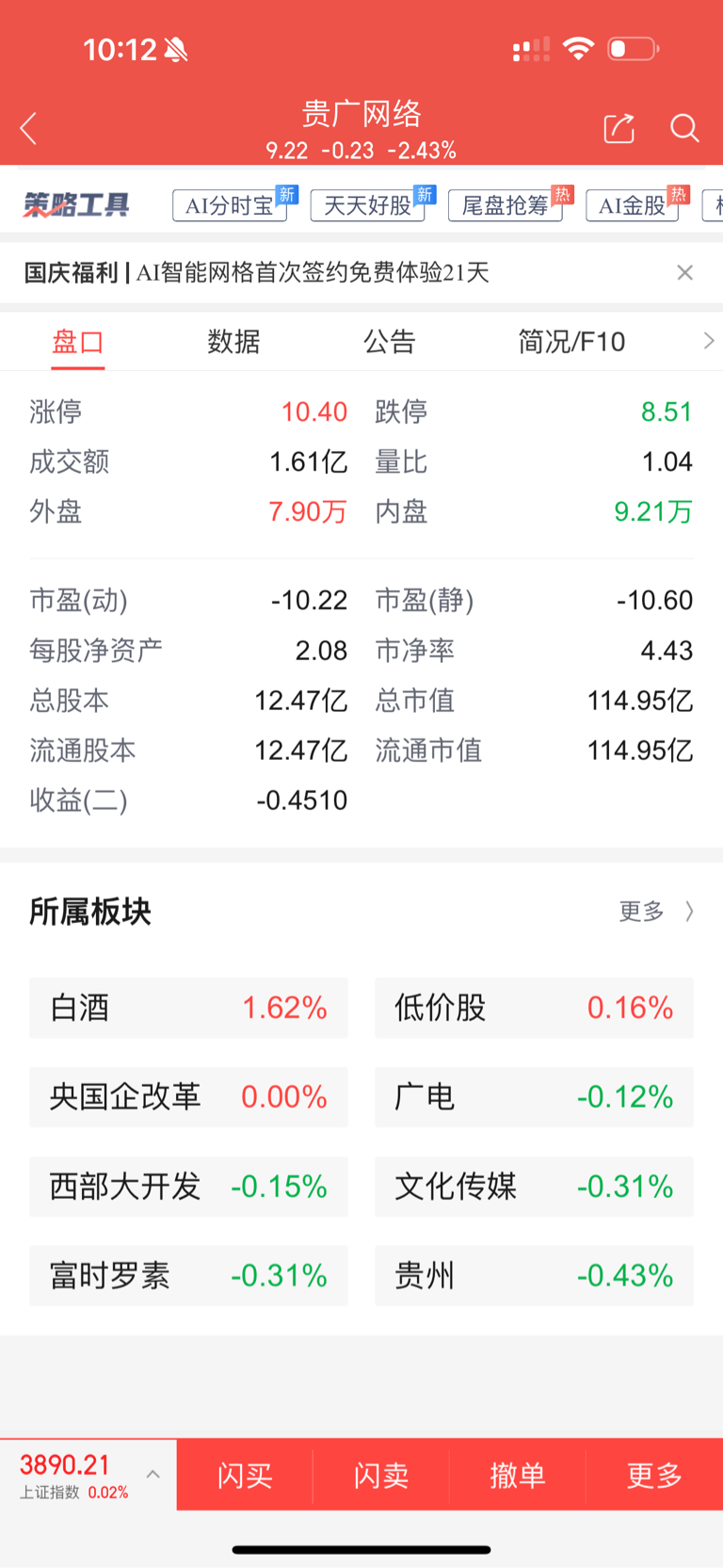$贵广网络(SH600996)$ 我想问问白酒概念是谁加上的