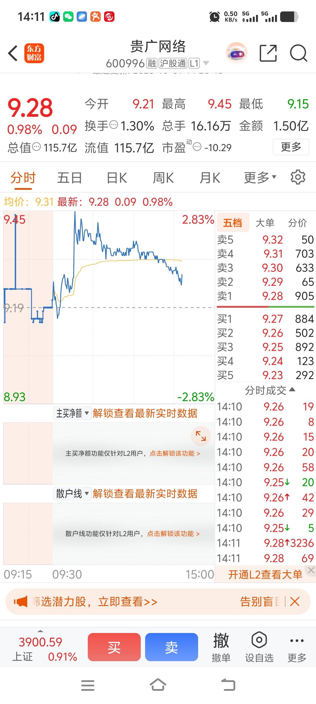 $贵广网络(SH600996)$ 3280多手,被一笔买走,牛