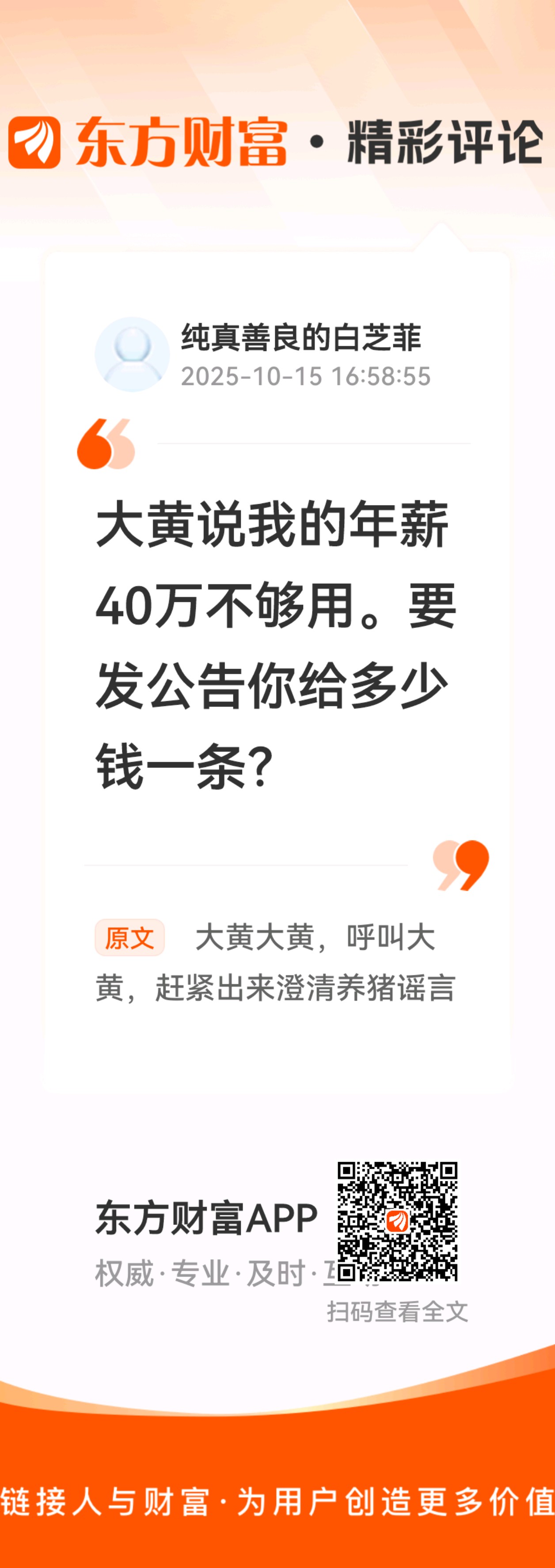 //@纯真善良的白芝菲 :大黄说我的年薪40万不够用。要发公告你给多少钱一条?