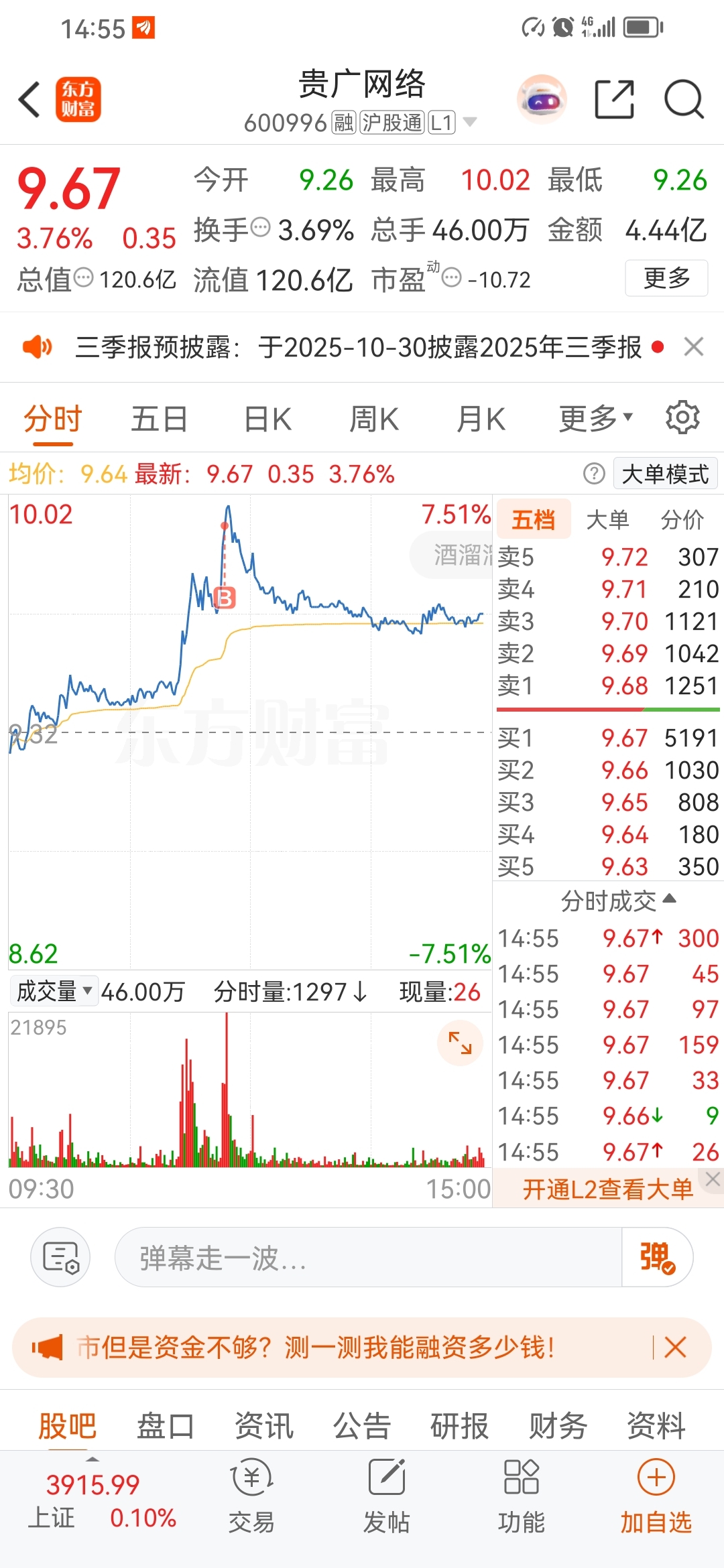 $贵广网络(SH600996)$ 我买的票基本完蛋