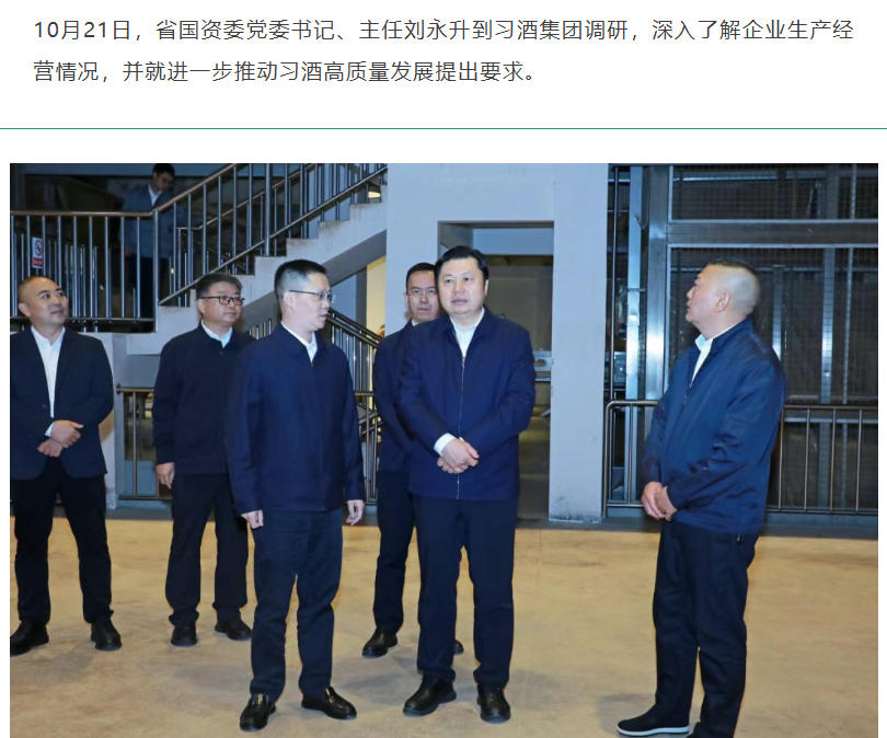 会上,习酒集团D委书记、董事长汪地强汇报了习酒集团近期生产经营情况,他表示,习酒集团将坚定不移贯彻省委、省政府、省国资委战略部署,进一步保持战略定力、坚定发展信心,加强分析研判、强化工作落实,久久为功、奋力拼搏,持续紧盯年度目标任务,科学谋划下一年度工作,为实现“十四五”圆满收官、“十五五”良好开局打牢坚实基础,为推动全省经济社会高质量发展贡献力量.