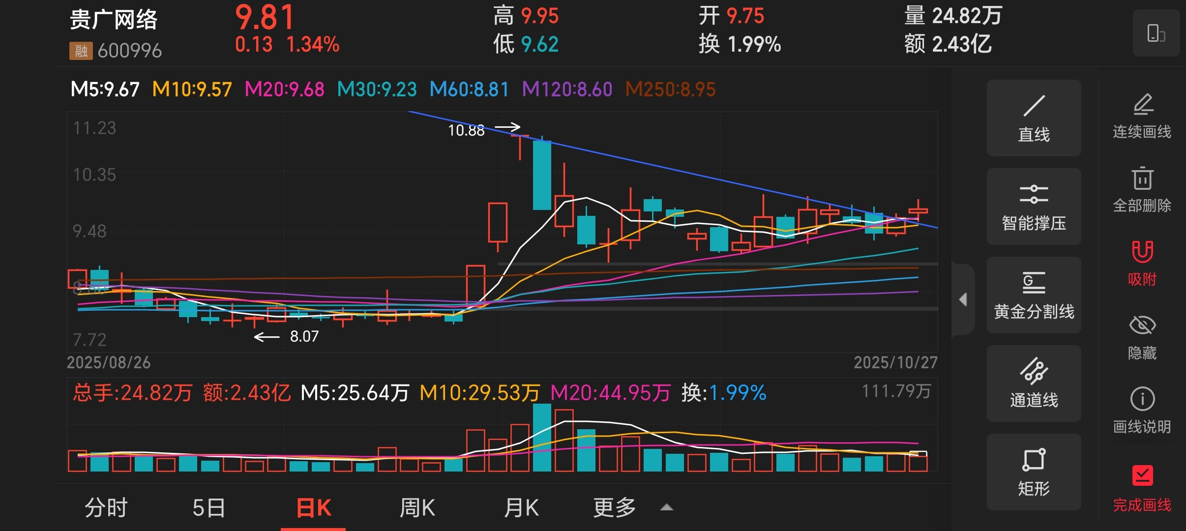 今天贵广网络算是走出向上趋势了,此时不买更待何时?