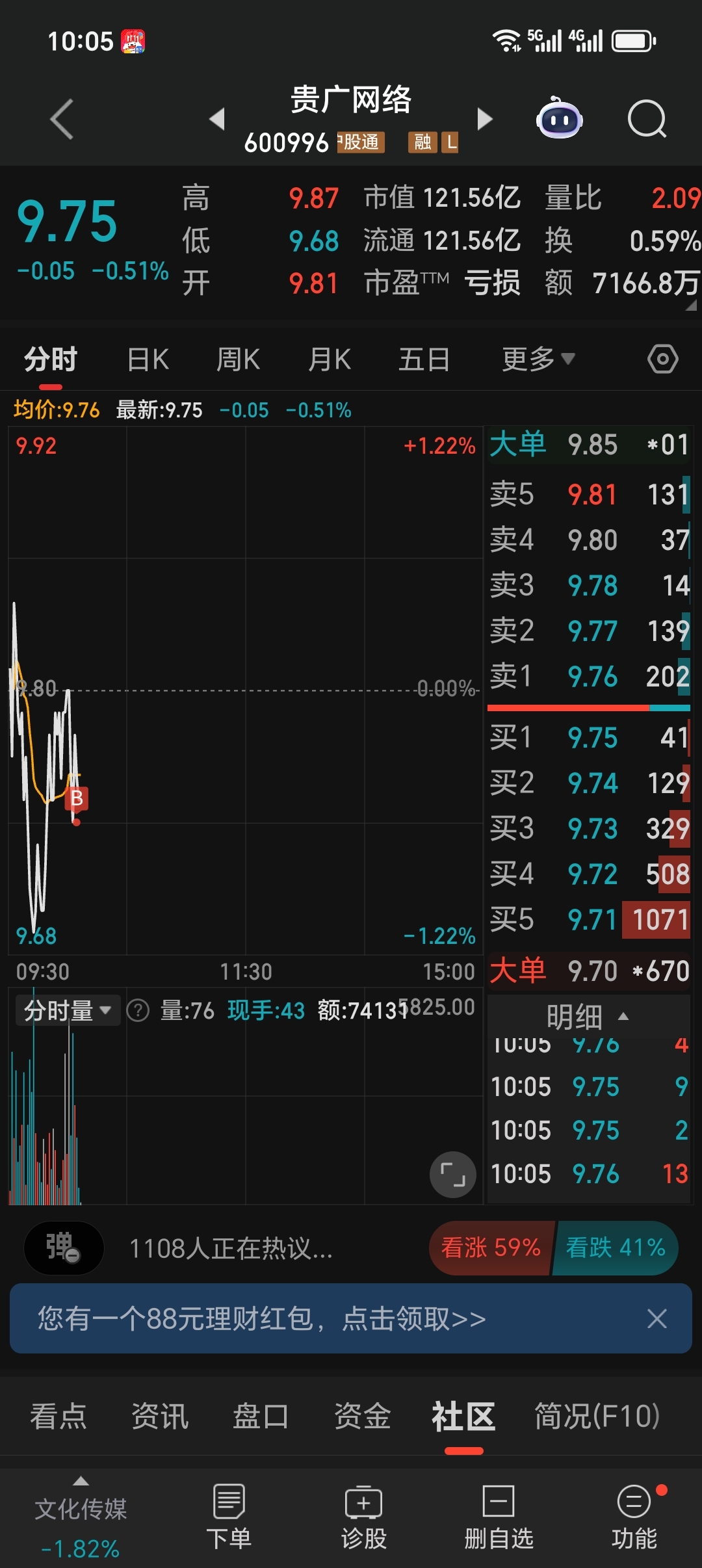 说我没有贵广仓位的看过来。今天又加仓了。前两天我又再次呼天抢地喊卖出吉视,害了谁