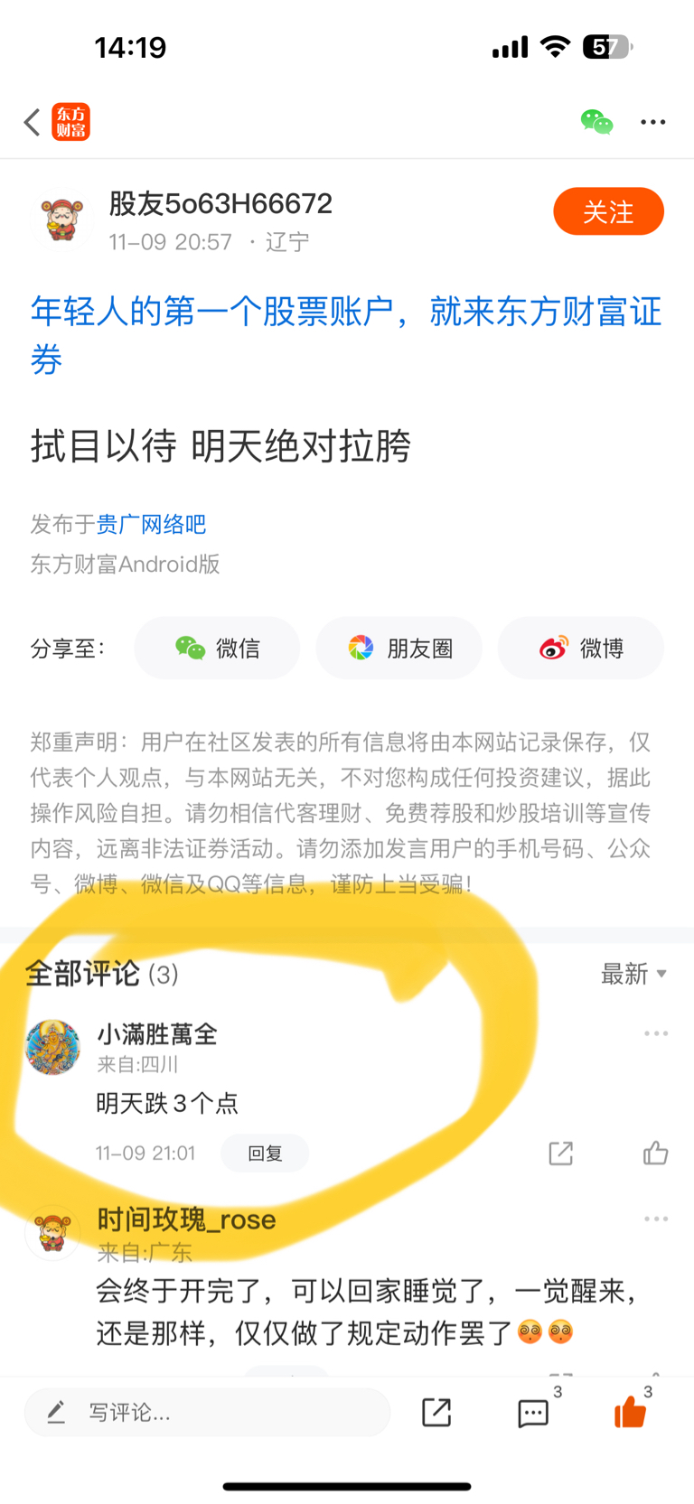 温馨提示: 1.根据《证券法》规定,禁止编造、传播虚假信息或者误导性信息,扰乱证券市场;2.用户在本社区发表的所有资料、言论等仅代表个人观点,与本网站立场无关,不对您构成任何投资建议。用户应基于自己的独立判断,自行决定证券投资并承担相应风险。《东方财富社区管理规定》