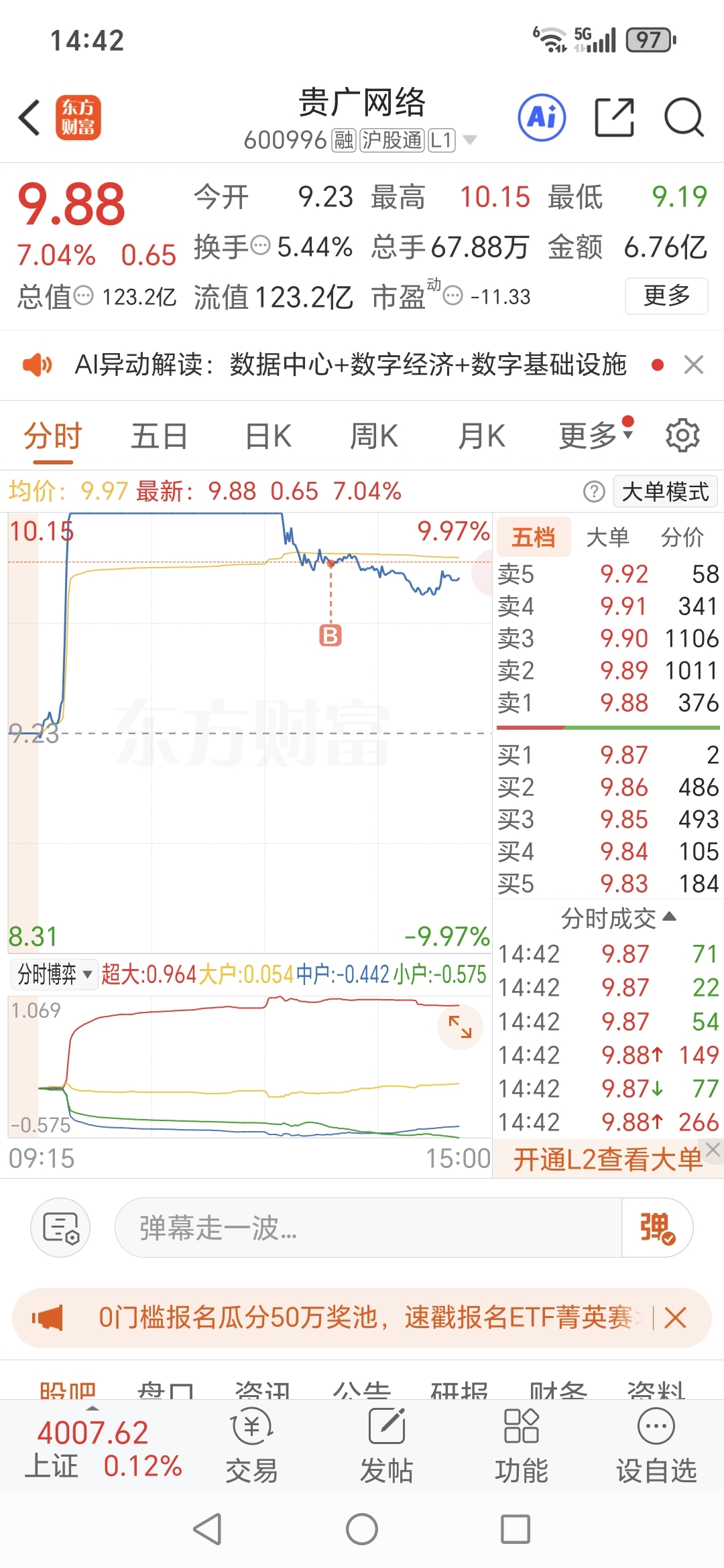 $贵广网络(SH600996)$ 我进来了,明天水下6个点开盘,已经做好割肉的准备了!