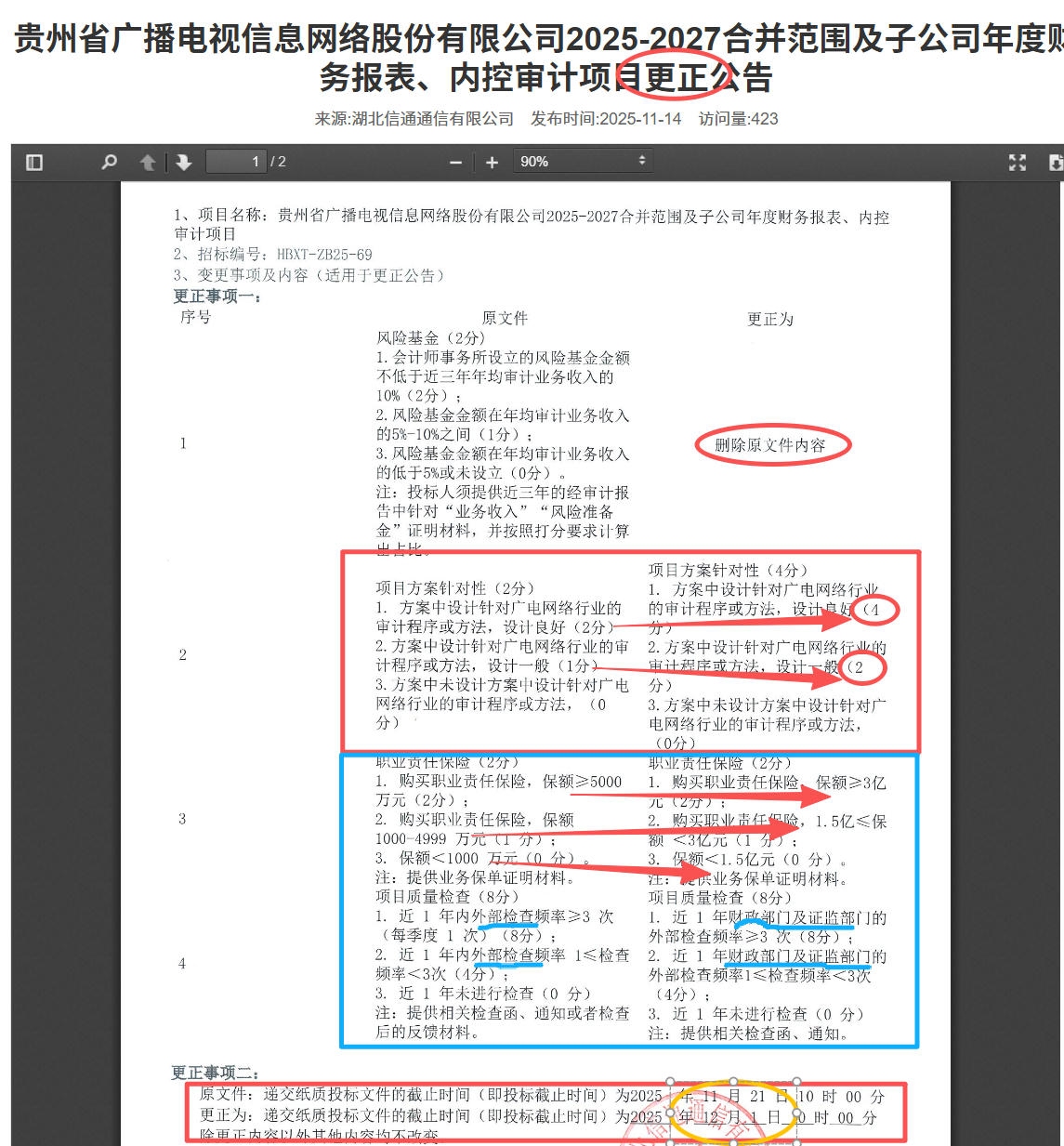 年度财务报表、内控审计项目-更正公告删减、提高、延期........