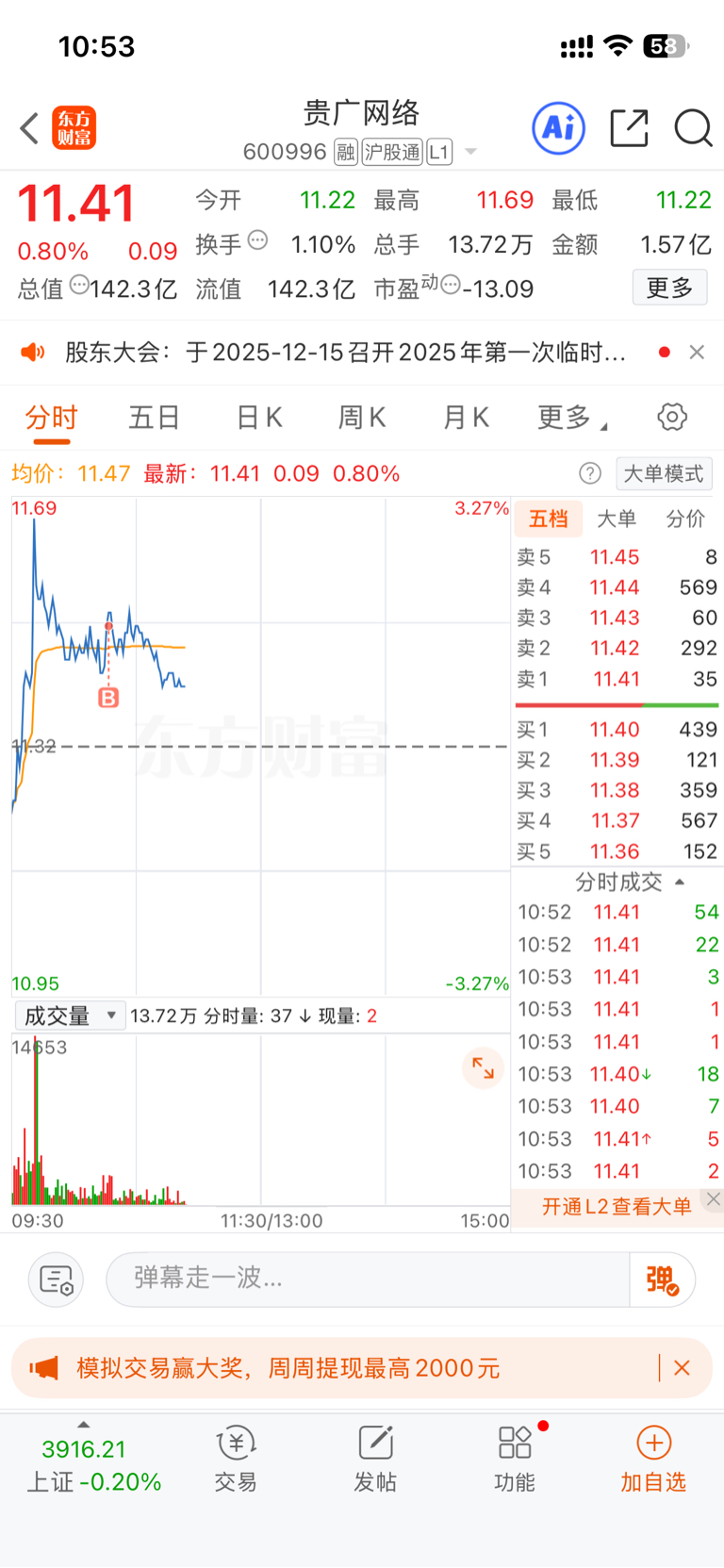 $贵广网络(SH600996)$ 什么鬼?刚来就套我?