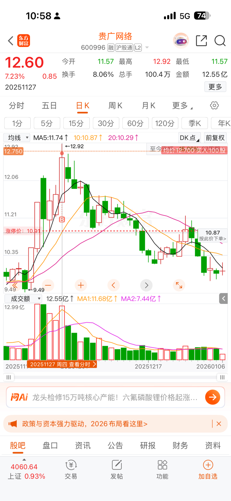 $贵广网络(SH600996)$ 周五来加仓不加仓是回不了本了