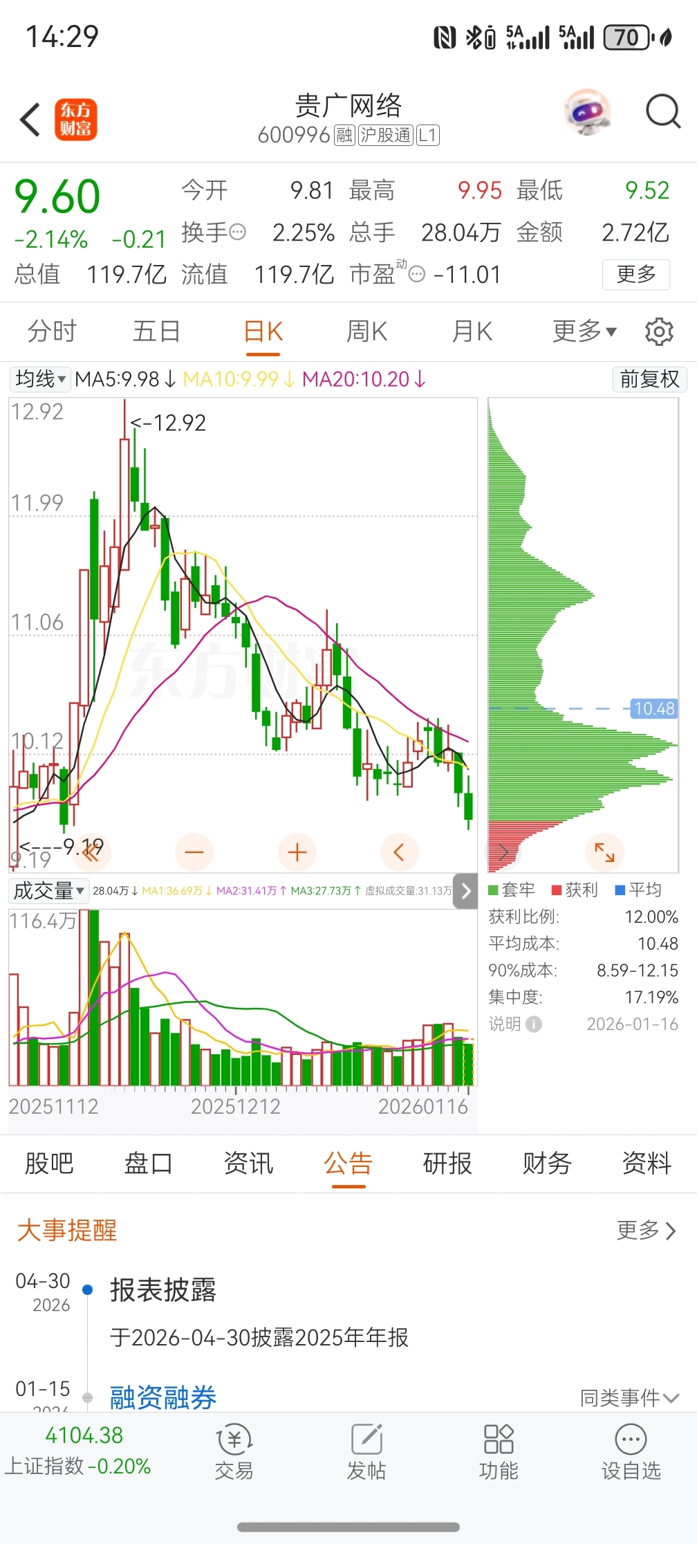 $贵广网络(SH600996)$ 代董一个多月前上任的时候股价12.6,上任一个多月后股价9.6,搞掉30%,厉害啊