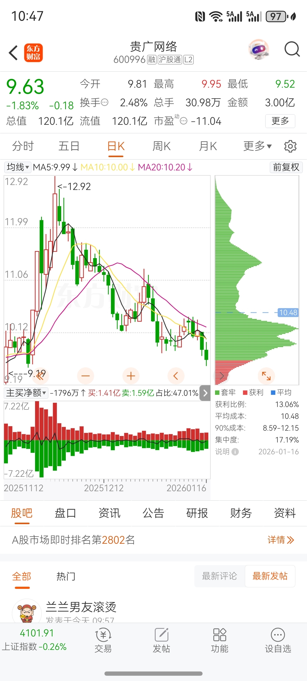 贵广网络3天跌10%,一个月不到跌30%,这算不算大落?谁来严查?