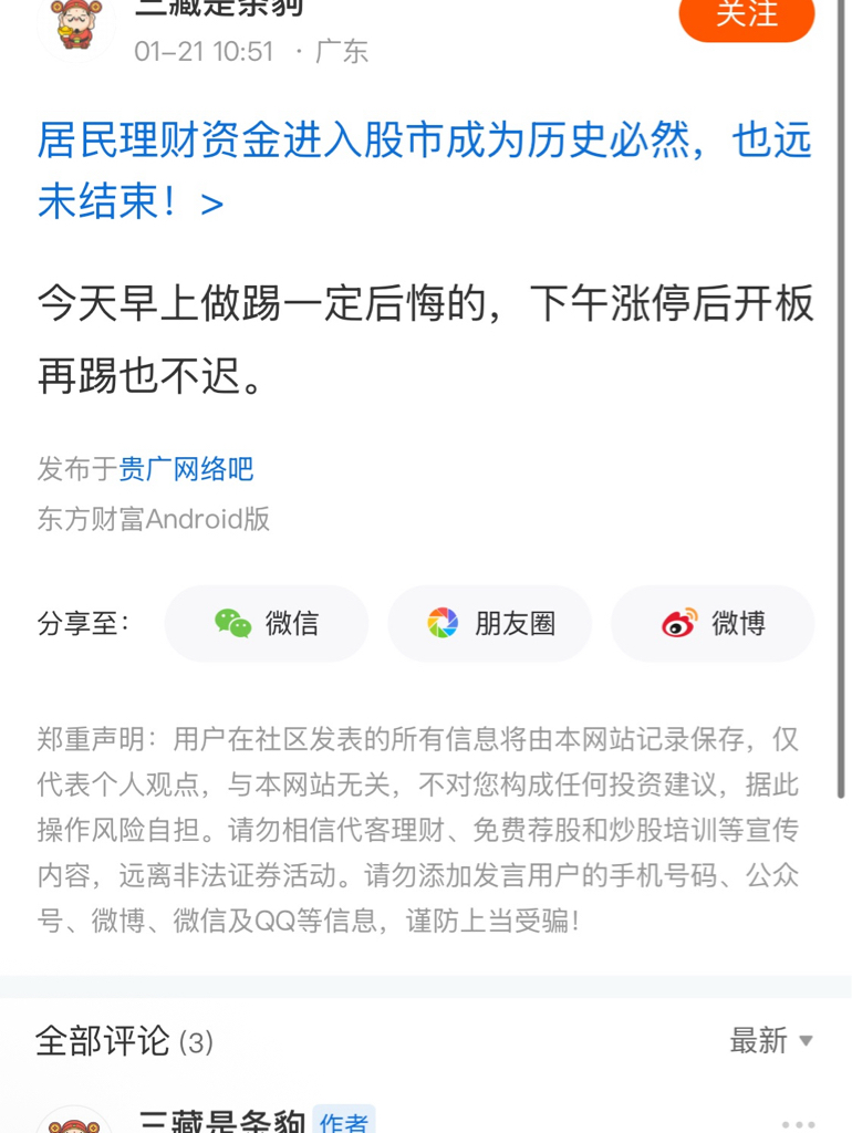 温馨提示: 1.根据《证券法》规定,禁止编造、传播虚假信息或者误导性信息,扰乱证券市场;2.用户在本社区发表的所有资料、言论等仅代表个人观点,与本网站立场无关,不对您构成任何投资建议。用户应基于自己的独立判断,自行决定证券投资并承担相应风险。《东方财富社区管理规定》