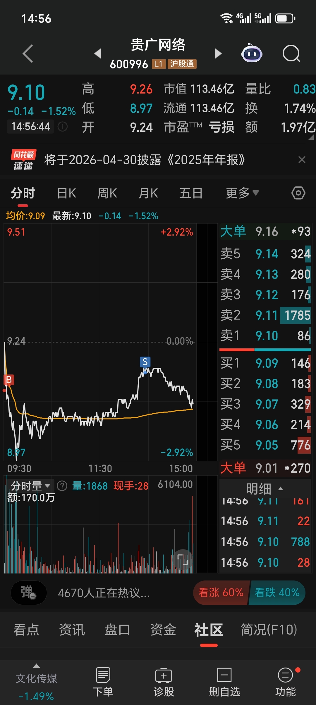 $贵广网络(SH600996)$ 今天试错性抄底赚差价,明天继续买入,踏空拉倒,留点钱过年,