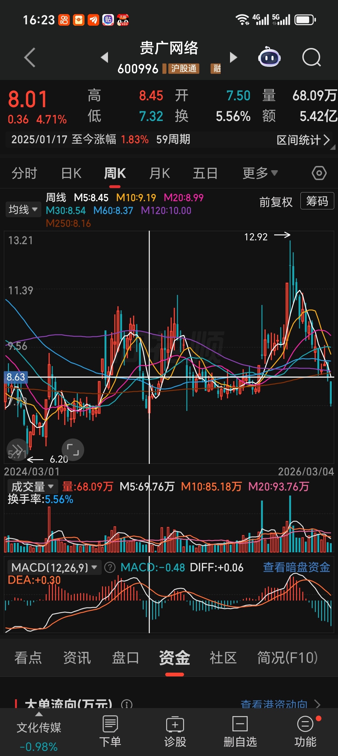 淡定淡定!最近贵广像这样走。大盘顶背离,贵广底背离,来抄底华为云注入。