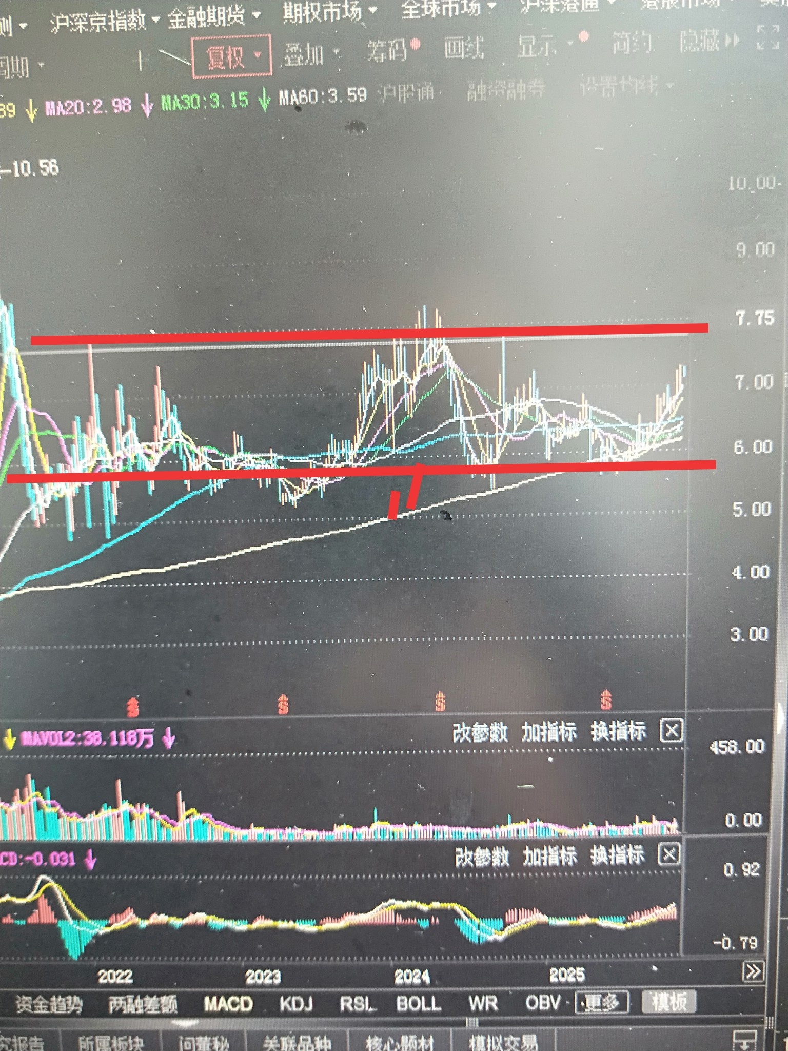 7.75到顶了。已经没劲了。7块以上买的,肯定赔利息。