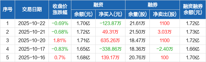开滦股份:融资净偿还123.87万元,融资余额1.7亿元(10-22)