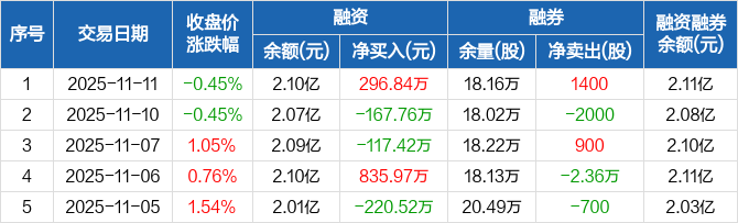 开滦股份:融资净买入296.84万元,融资余额2.1亿元(11-11)