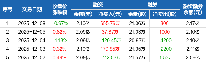 开滦股份:融资净买入655.79万元,融资余额2.16亿元(12-08)