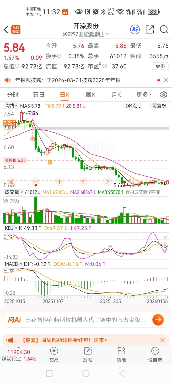 $开滦股份(SH600997)$ 主力大哥,我可以补仓吗?