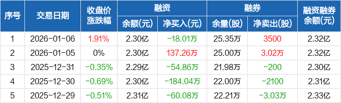 开滦股份:融资净偿还18.01万元,融资余额2.3亿元(01-06)