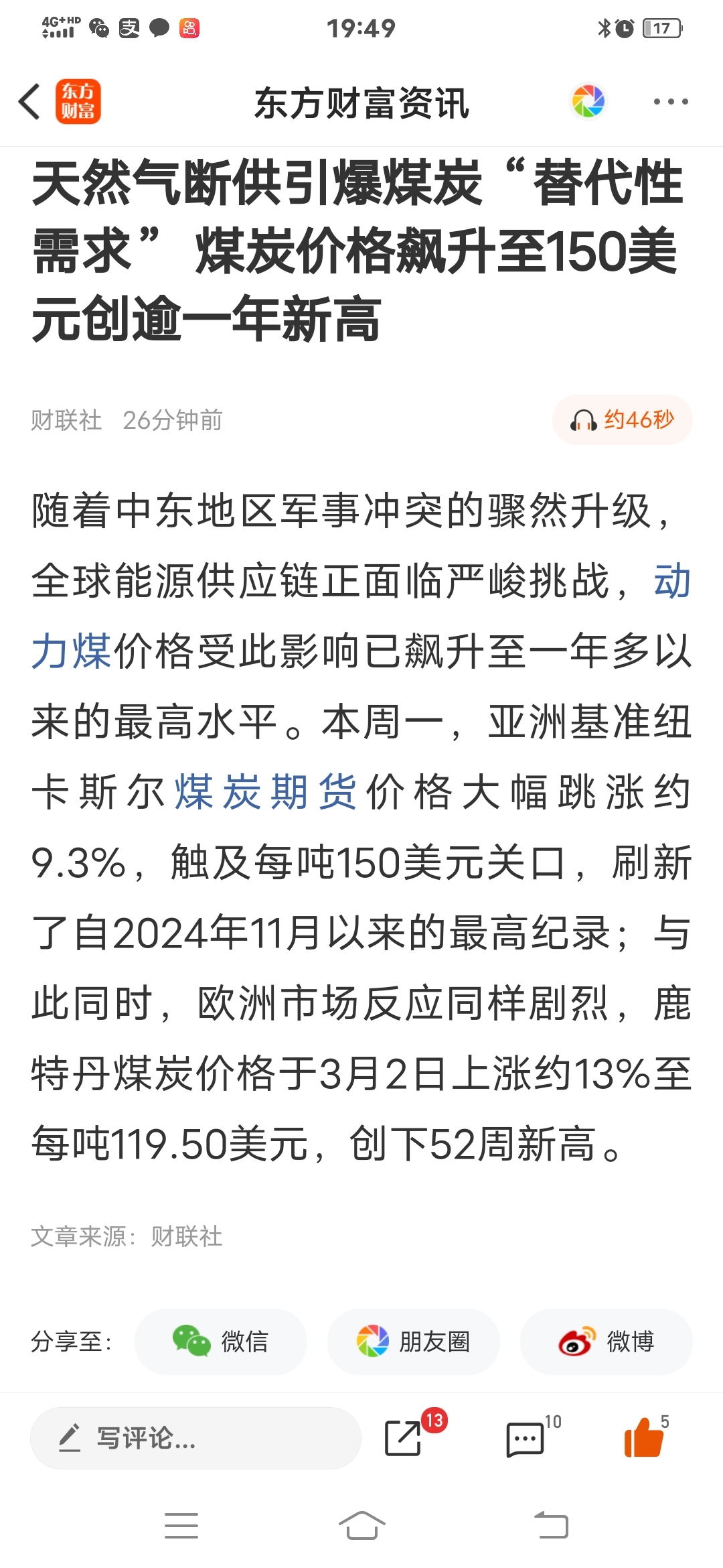 天然气断供利好煤炭没毛病!