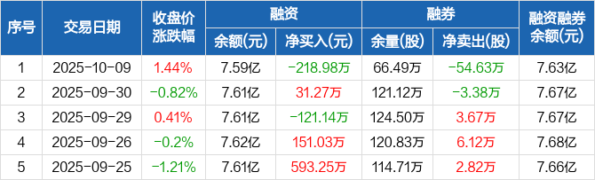 九州通:融资净偿还218.98万元,融资余额7.59亿元(10-09)