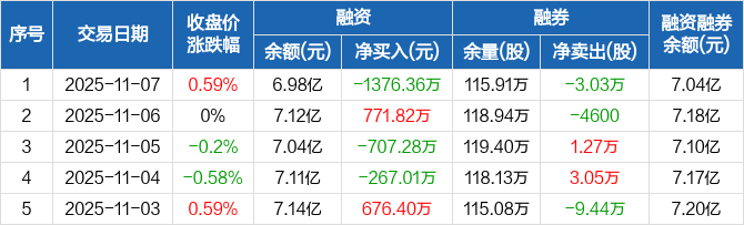 九州通:融资净偿还1376.36万元,融资余额6.98亿元(11-07)