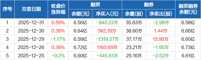九州通:融资净偿还840.23万元,融资余额6.56亿元(12-31)